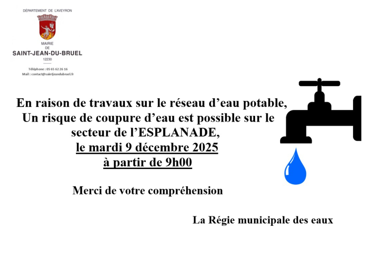 Suite à la fermeture provisoire du bureau de poste de St-Jean du Bruel, les objets recommandés ou colis remis contre signature, non distribués, seront déposés en Mairie à compter du lundi 4 août 2025, afin d’éviter aux usagers de se rendre à la Poste de la Cavalerie. Ils pourront être retirés à l’accueil de la […]