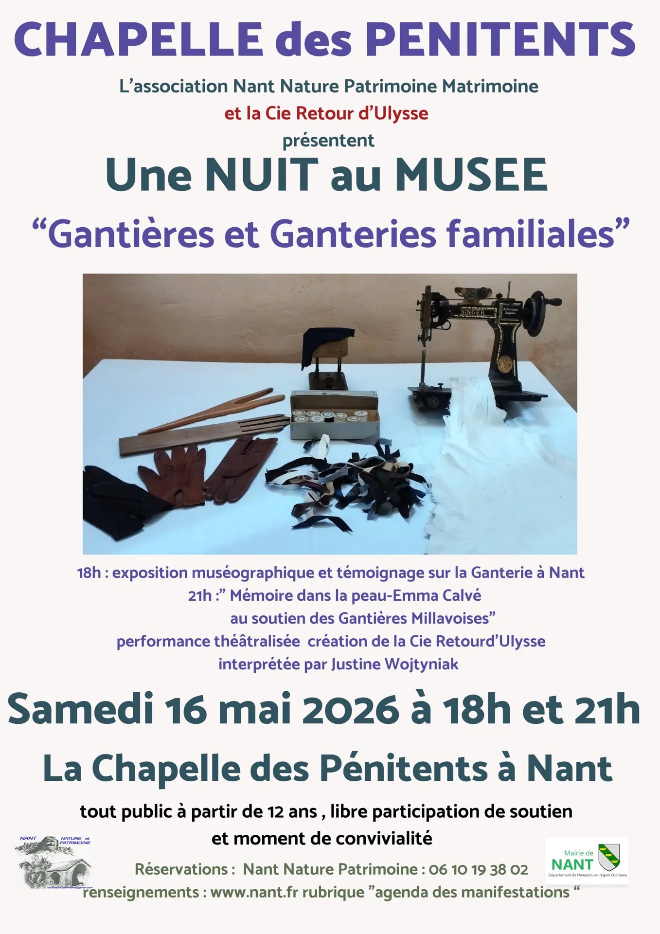 En écho à la Nuit Européenne des Musées et à la candidature de la ville de Millau au classement au patrimoine culturel immatériel des savoir-faire liés à la ganterie, La Chapelle des Pénitents propose de faire acte de mémoire sur une ganterie familiale à Nant et sur les gantières nantaises.